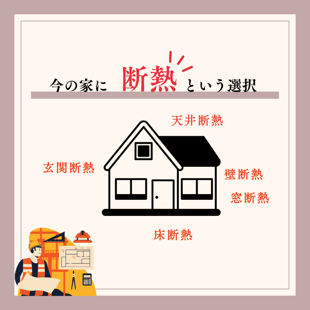 今のお住まいに合わせた方法を選ぶことで、冬の寒さだけでなく、光熱費の負担軽減や、夏の暑さ対策にもつながります。